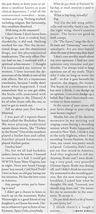 Q&A: Leonard Cohen