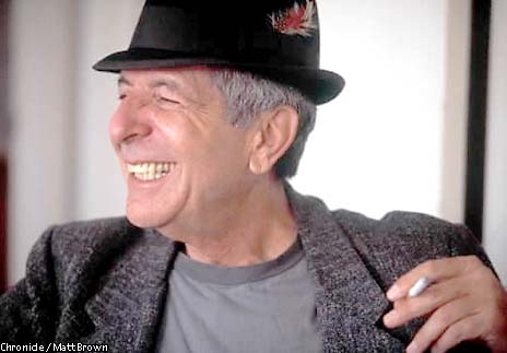 Cohen is lounging around his home in a black stingy brim fedora, gray T- shirt and charcoal sport coat. He speaks in a low, soft voice and lights occasional cigarettes. His home is an unremarkable duplex in a quiet, nondescript mid-Los Angeles neighborhood not substantially changed since the '50s. His grown daughter lives downstairs and his son, also a songwriter, lives around the corner. Inconspicuous signs of his Jewish faith hang on the walls; his Zen master sees no conflict.